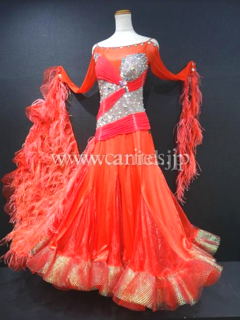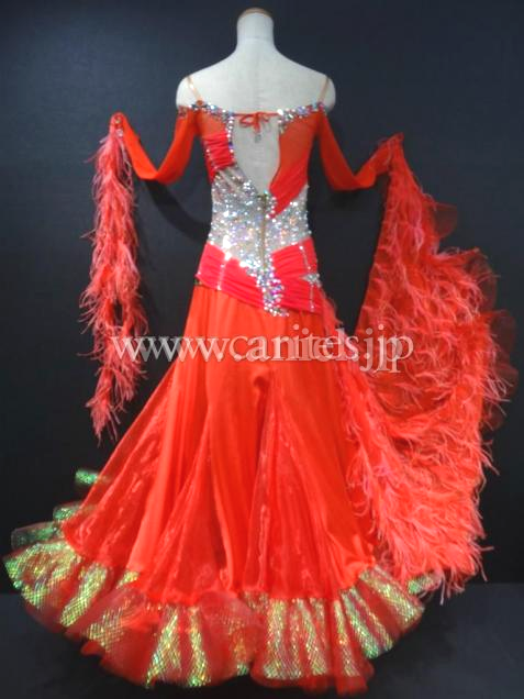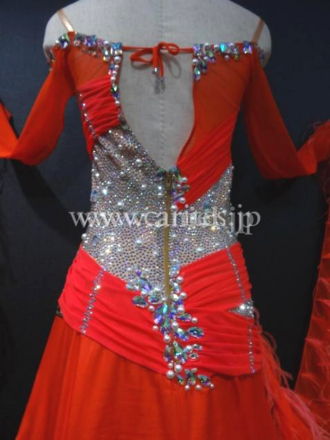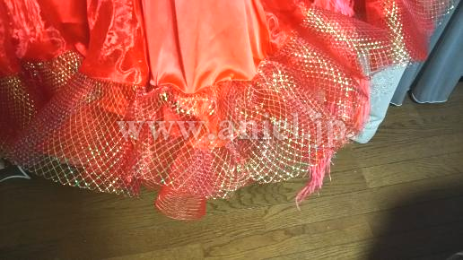 華やかな赤のドレスです。背中のデザインが凝っていて後ろ姿がキュートで印象的です。