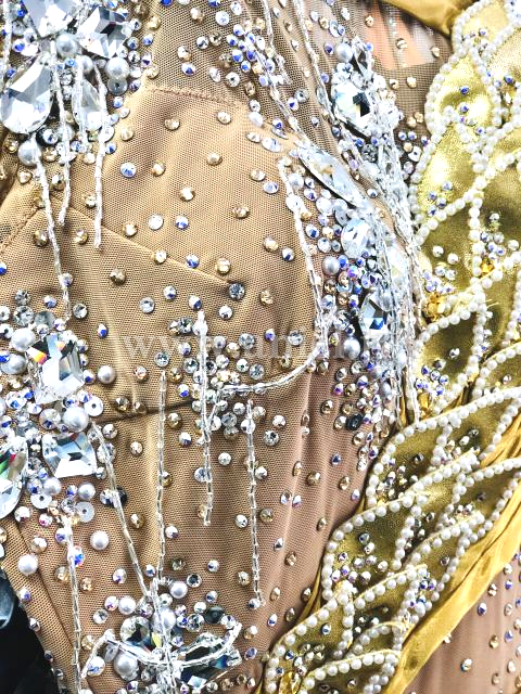 ボディは大小のスワロフスキーやパールで装飾されています。