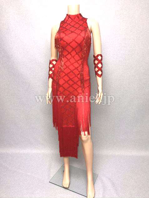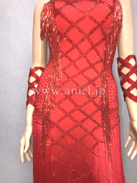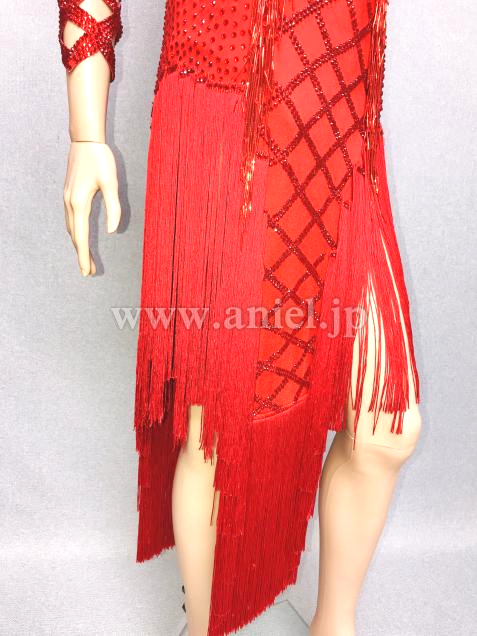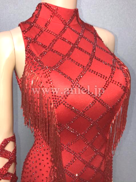 ドレス全てをラインストーンでデザインして 裾のフリンジやふんだんに使ったビーズフリンジがとてもゴージャスで スタイリッシュです