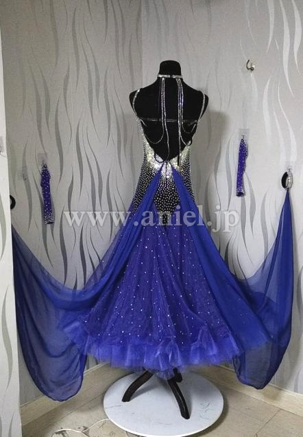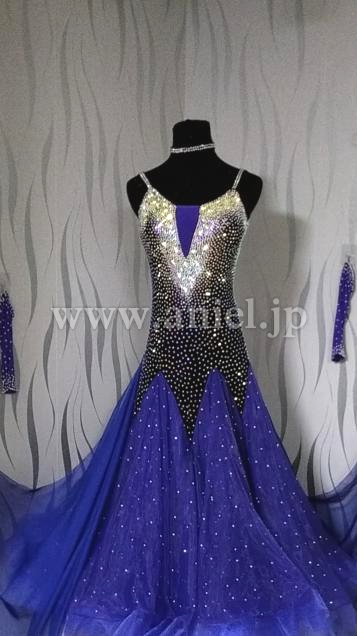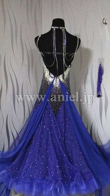 深い青のシックな雰囲気のドレスです。