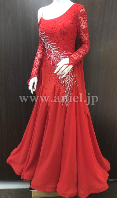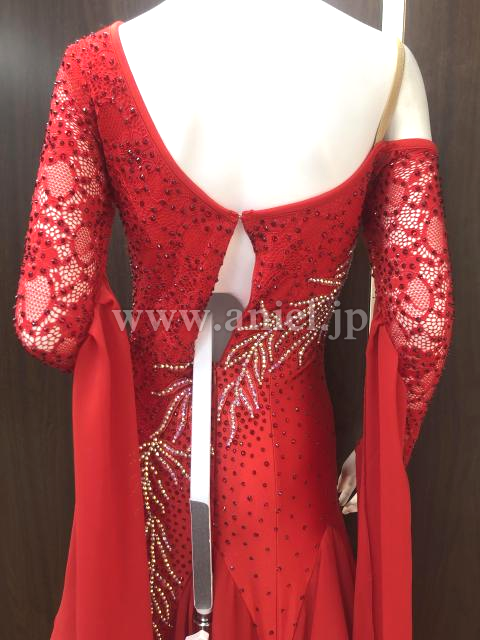 縦に流れる様に石が付いた、舞台映えするドレス ストレッチ素材で、Lサイズまで着用可。