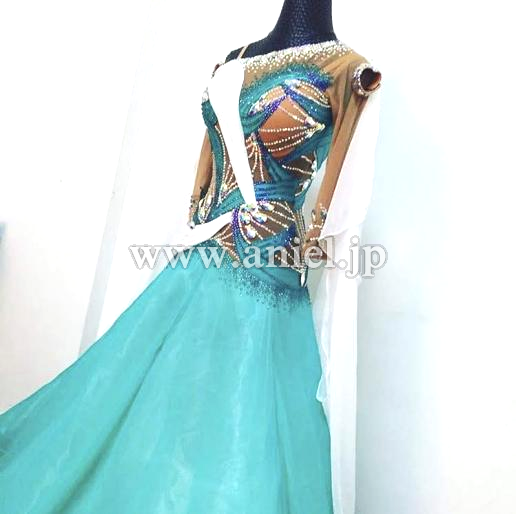 足がびっしり付いていて1つも石落ちありません。ジェードのスカートに白のフロートがとても大きく目立ちます。とても軽くて良く舞います。目を引く高貴なデザインです。