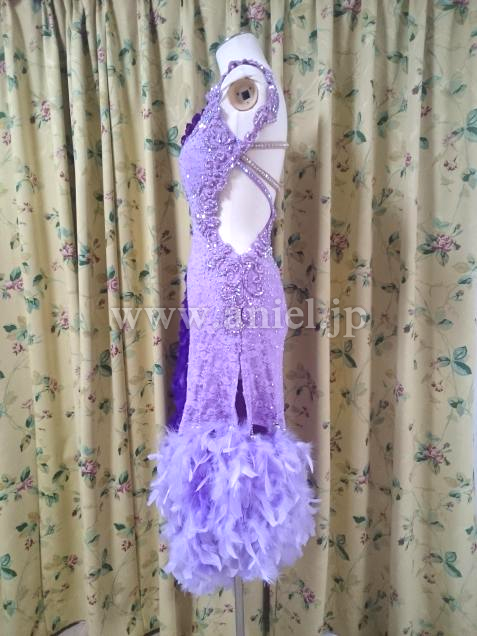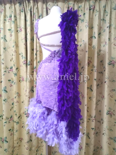 写真は上半身のファーが青紫っぽく写っていますが、実物は紫色です。