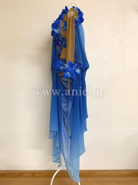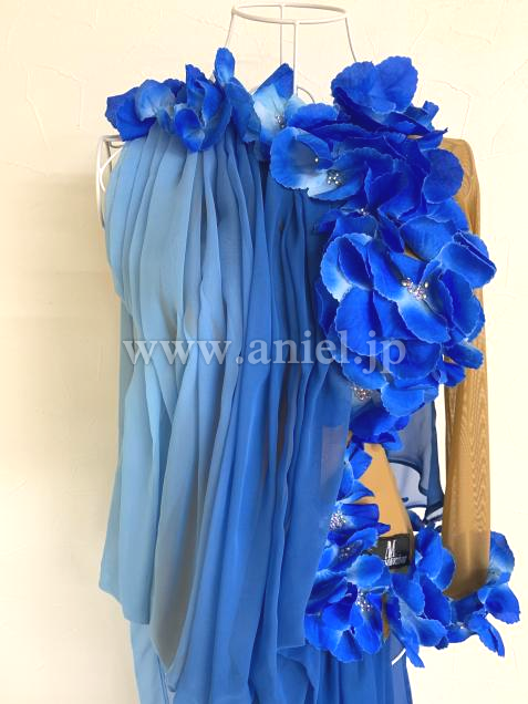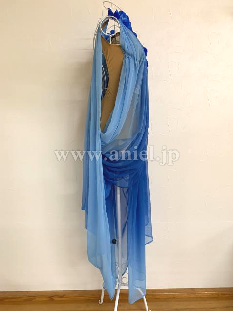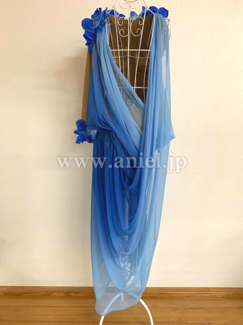 購入後、裾のドレープを肩で5cmほどつまんでいますが、切っていませんので糸を取れば元の長さまで垂らせます。