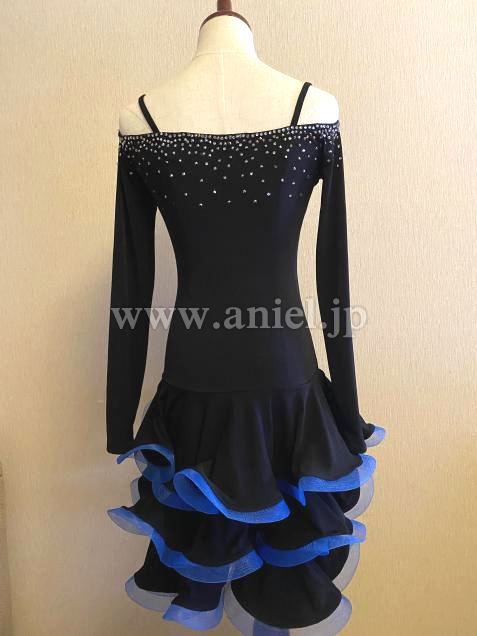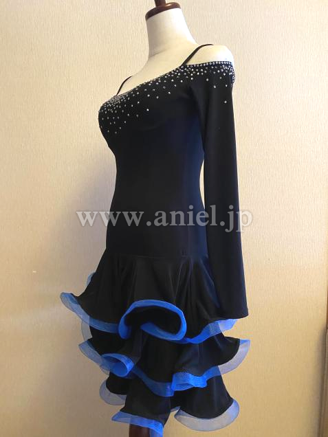 オフショルダーの長袖で3段のティアードのスカートがよく踊ります。