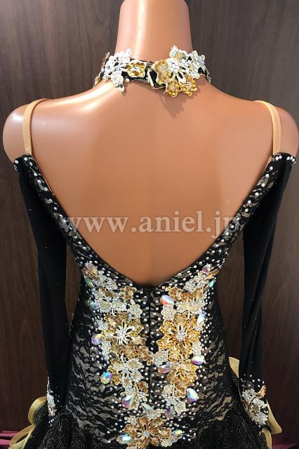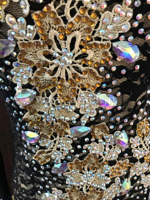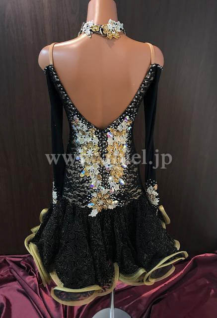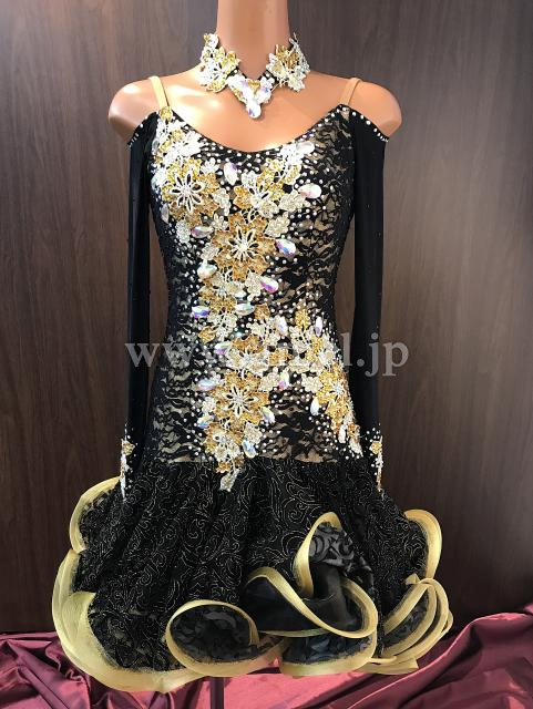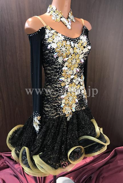 黒レースのボディに白とゴールドのモチーフが映えます。