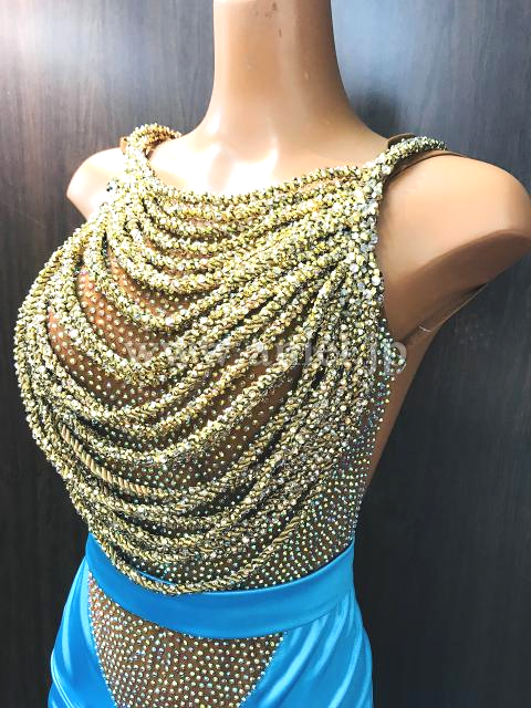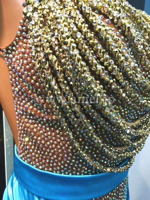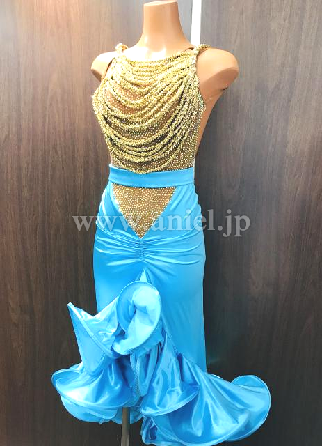 スカートはロングのターコイズカラーでどんなフロアでも目立ちます。