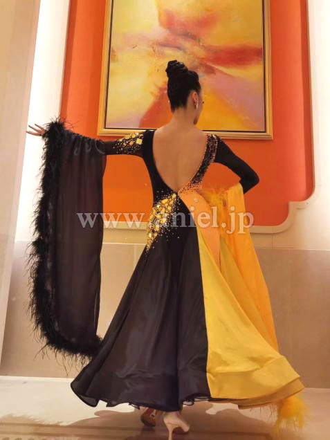 黒イエローのバイカラードレス。