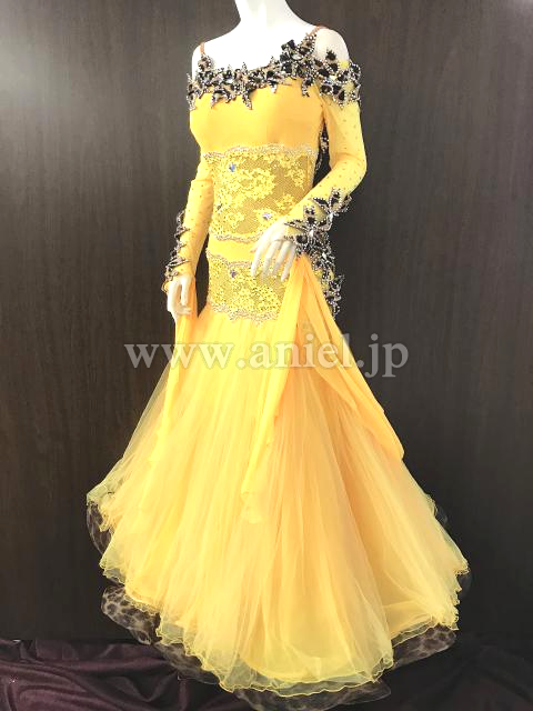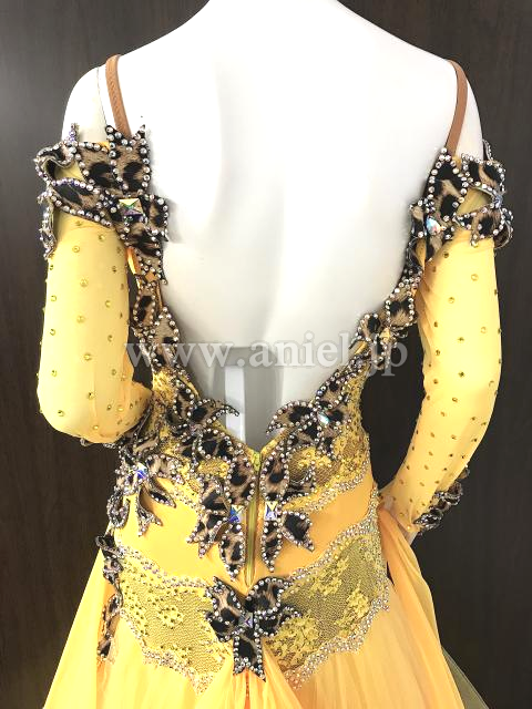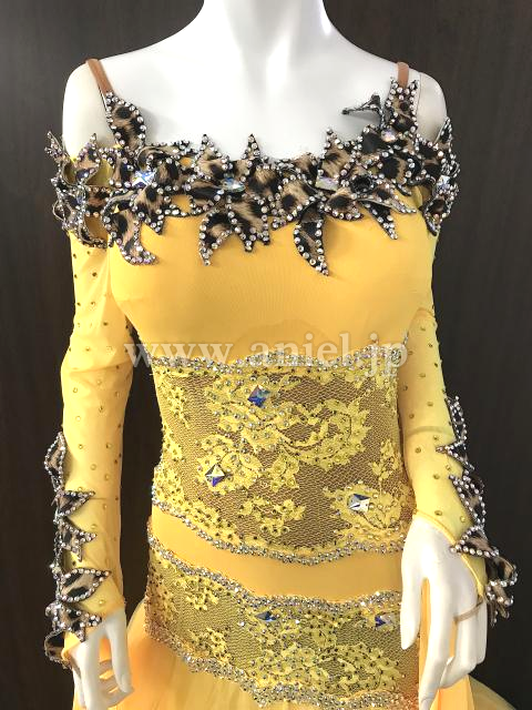黄色とヒョウ柄のロングスリーブドレス