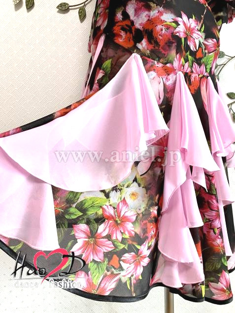 縦ラインにつるしたベビーピンクのフリルはスカートのボリュームをアップし、スピード感UP