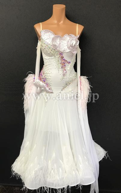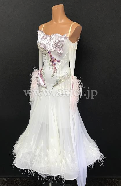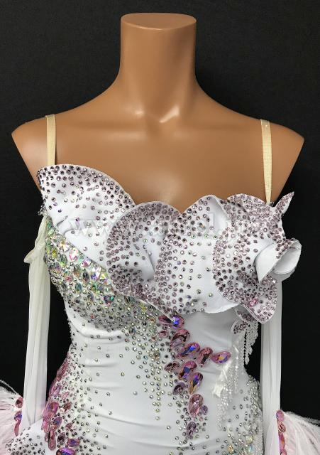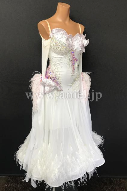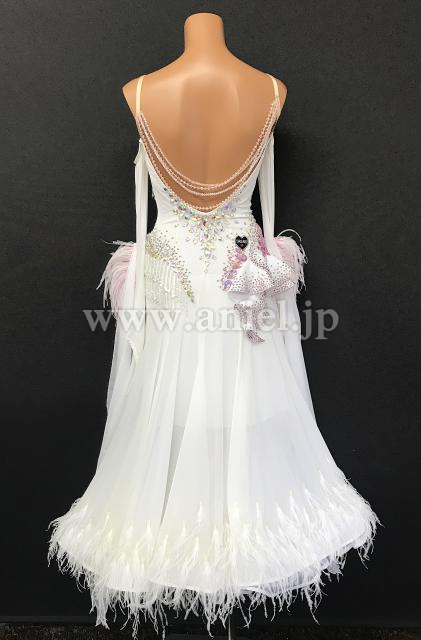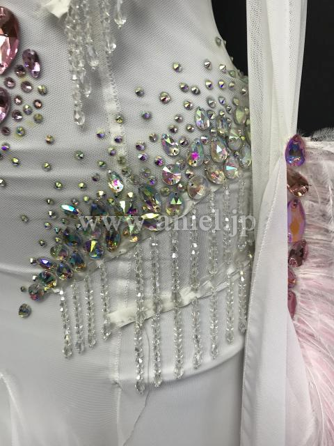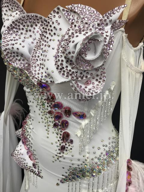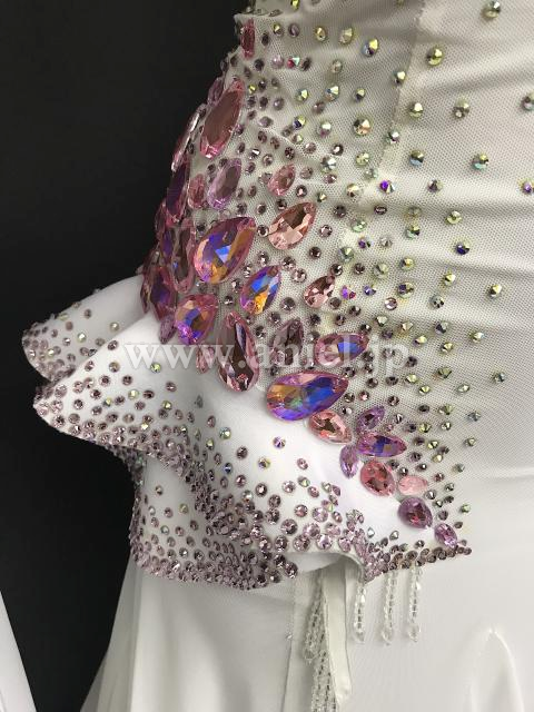 ホワイトにピンクのストーンが装飾されたキュートなドレスです。