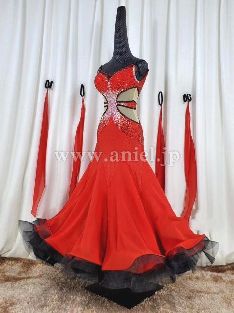 赤のボディにスカートの裾は黒のホースヘアがアクセントとしてつけられています。