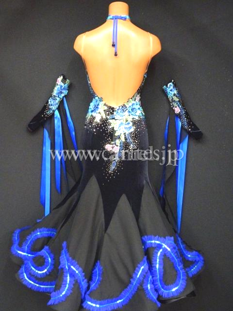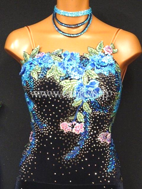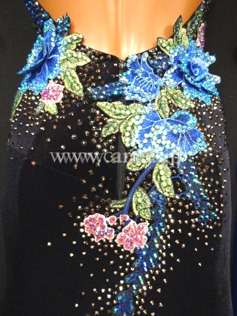 ベルベットのブラック生地に、ブルーの花モチーフでデザイン。