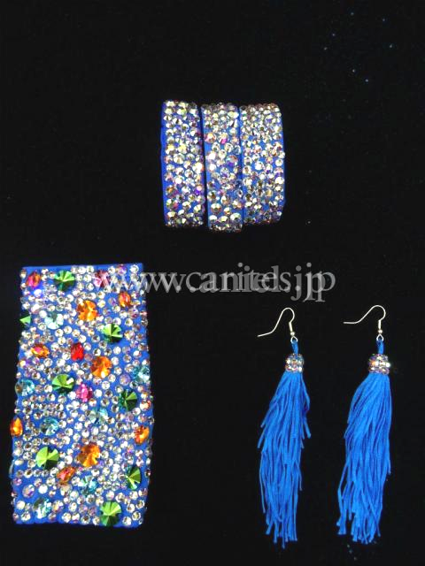 胸元、サイドの骨盤部分、ベルトとスワロフスキーをカラフルに使用しキラキラと輝きます。