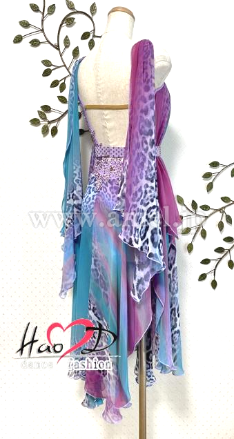 エメラルドグリーン&紫のマーブルに豹柄
