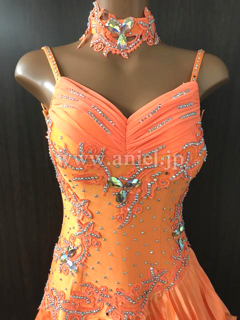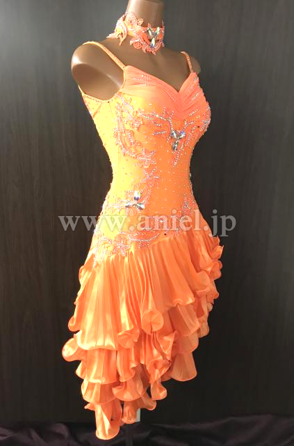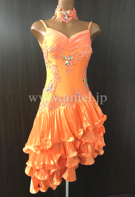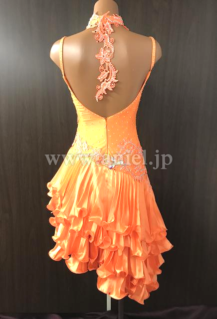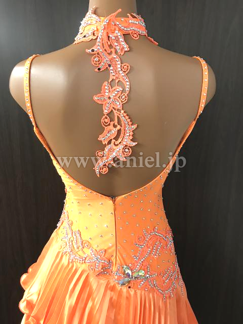 オレンジのノースリーブフリルドレス