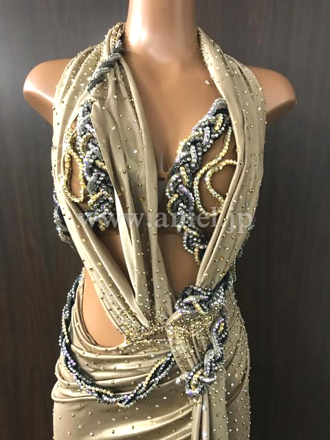 ベージュベースのシックでかっこいいドレスです。
