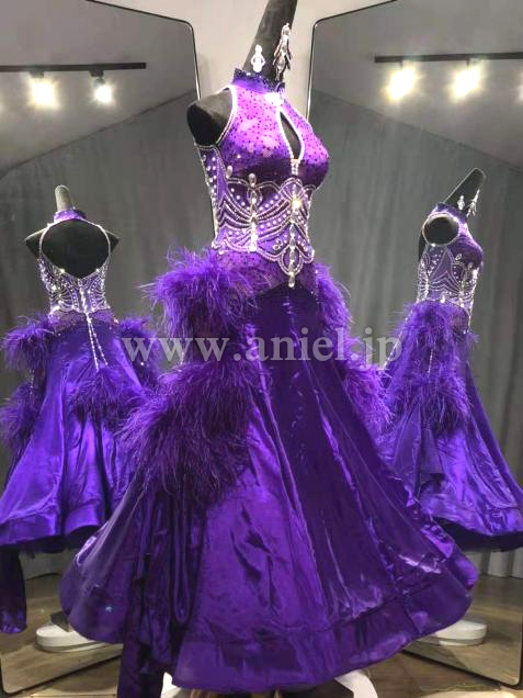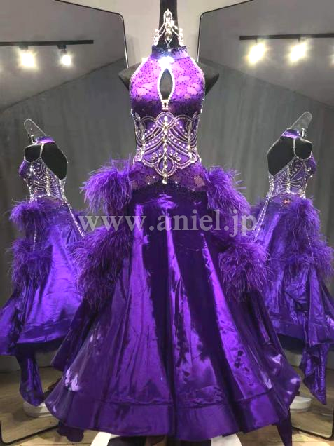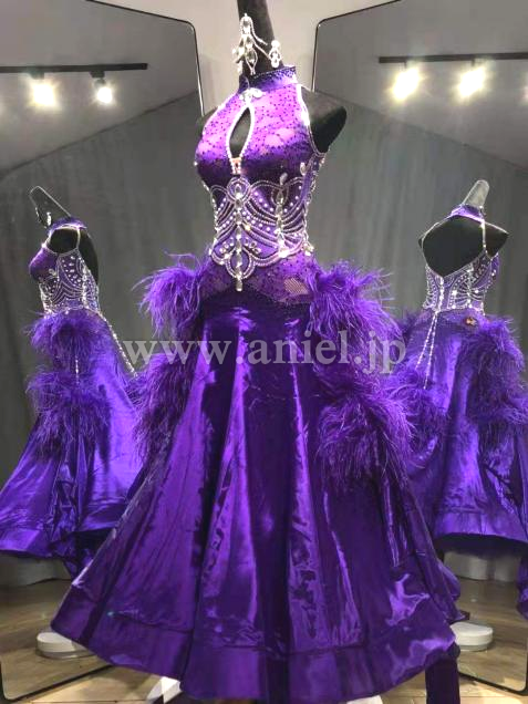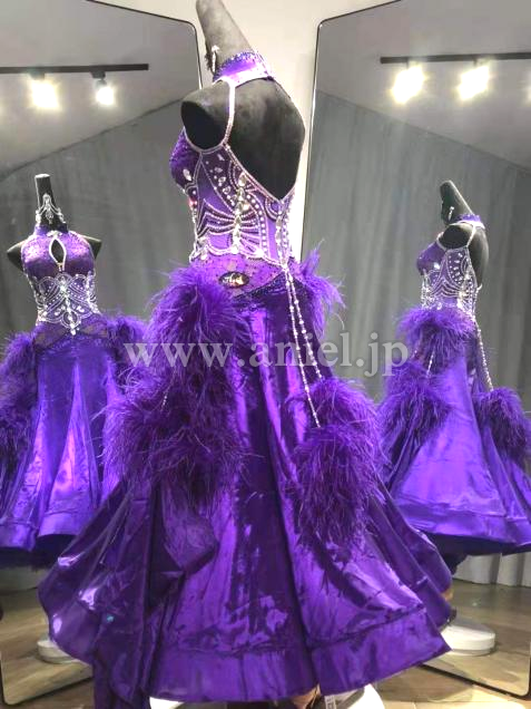 羽根の装飾が華やかでAラインスカートが大きく踊ります。