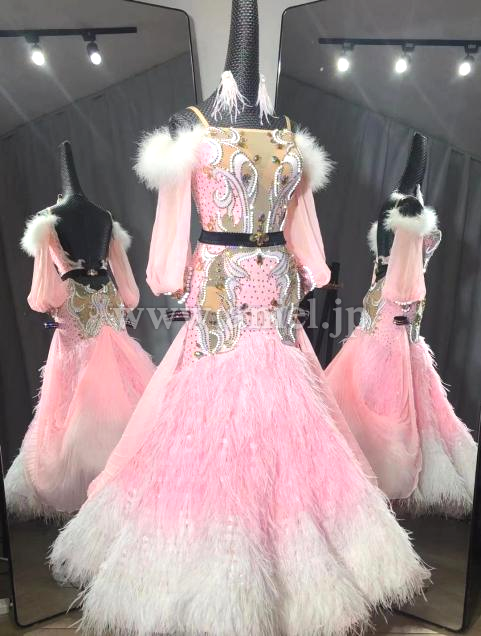 スカートはピンクと白の羽根たっぷりでとても豪華です。