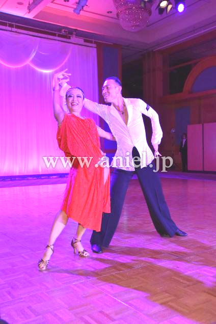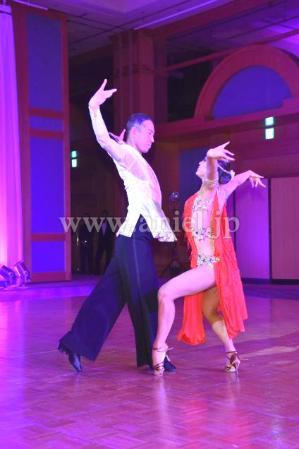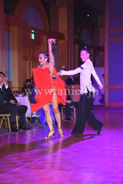 華やかな赤い生地がよく踊るドレスです。
