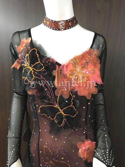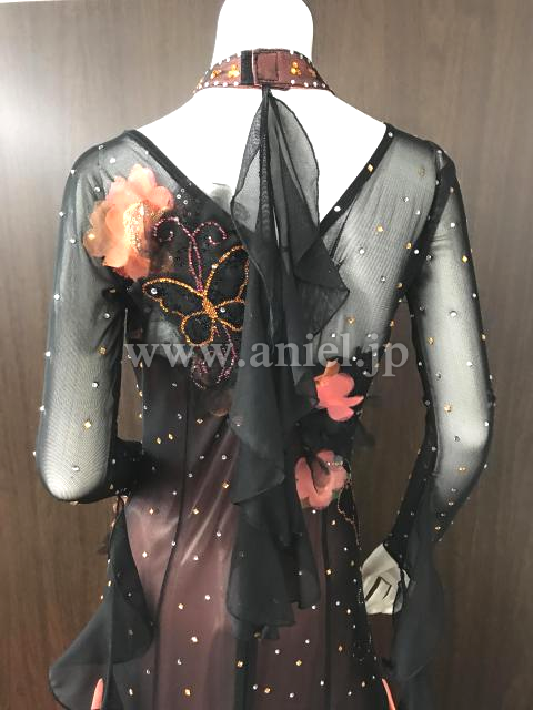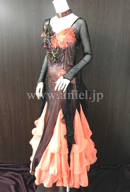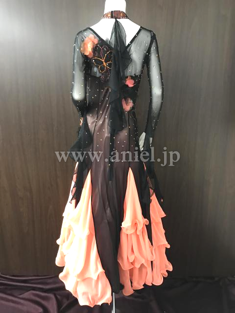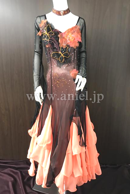 黒にオレンジカラーが映えるドレスです。