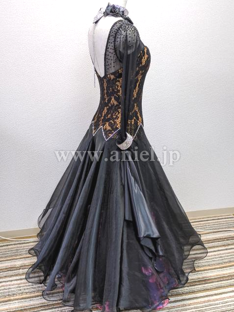 回転すると動きがもっと綺麗にはえます。見た目の黒のドレスだけでなく、
