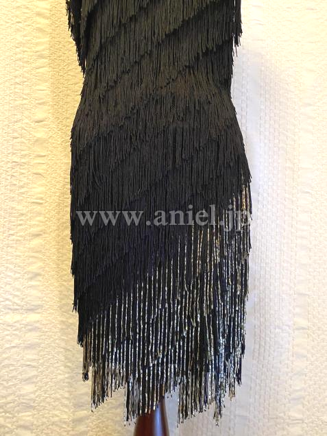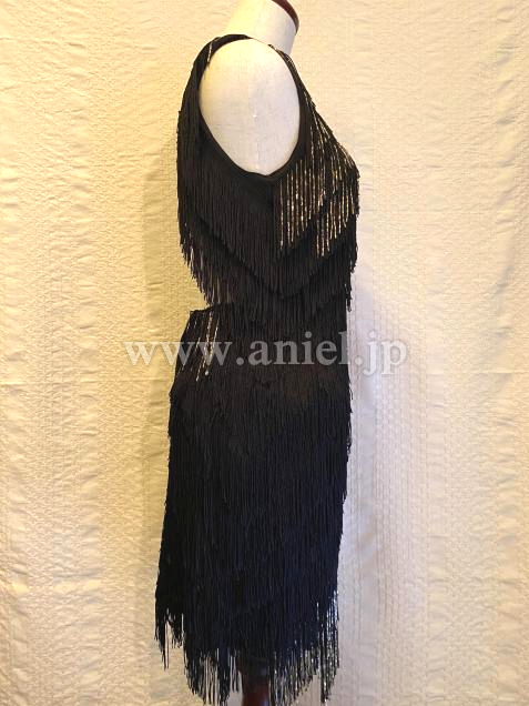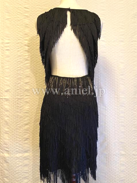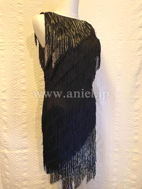黒フリンジにゴールドの竹ビーズのアクセントが効いてよく踊ります。