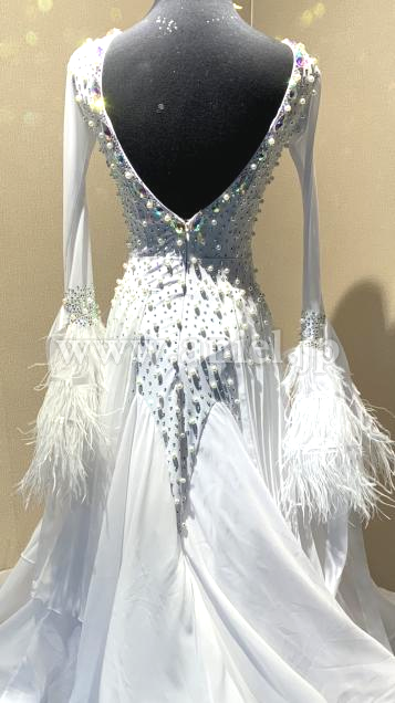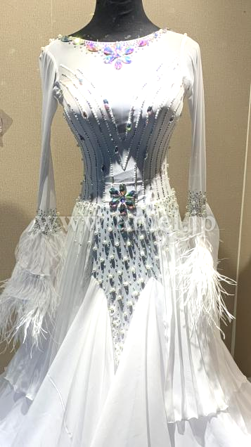流行りのベルスリーブに羽根があしらわれています。
