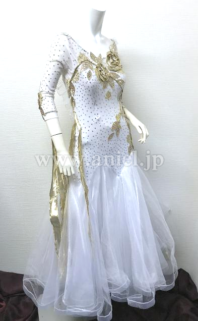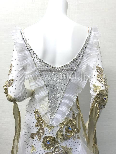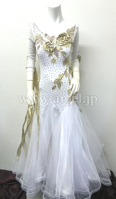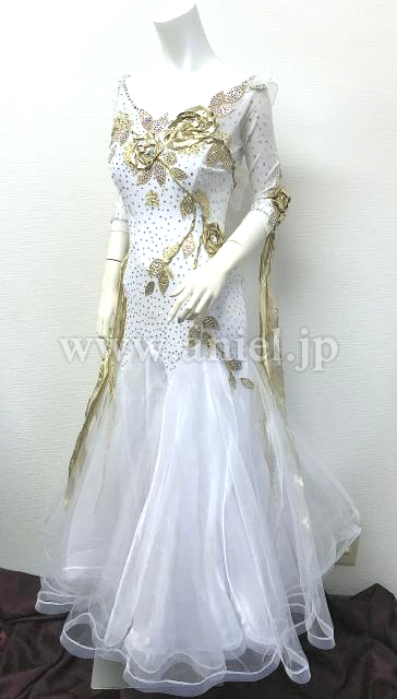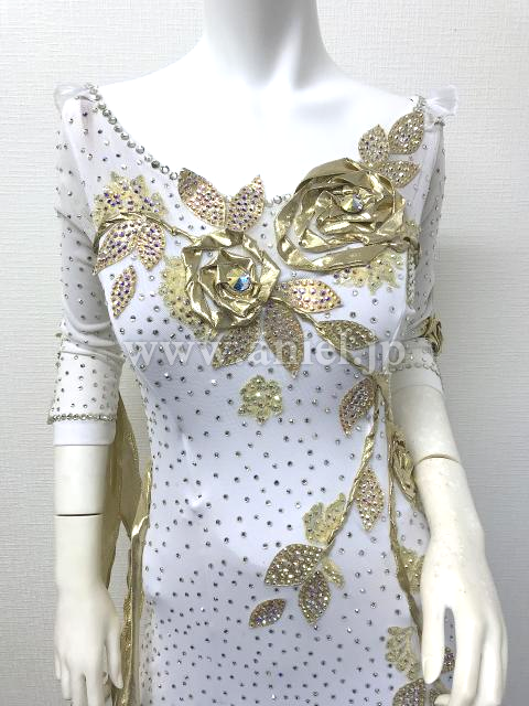白とゴールドの七分袖のドレス