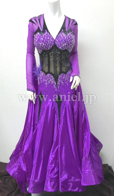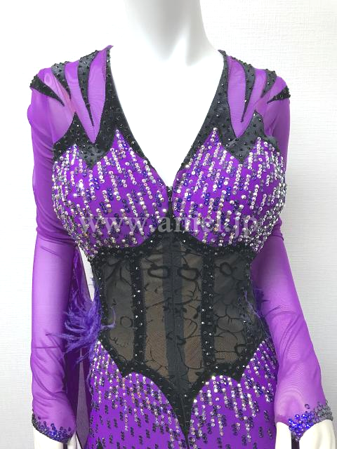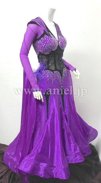 紫と黒のロングスリーブドレス
