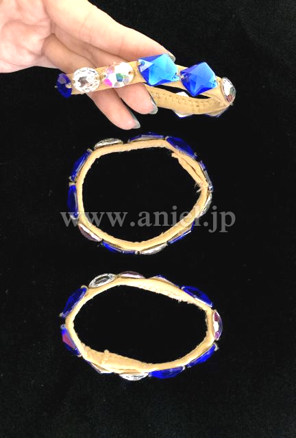 大きいカラーストーンやオーロラストーン、ビーズフリンジで華やかに装飾されています。