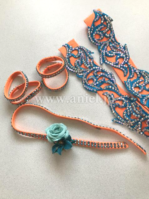 サファイアカラーのスワロフスキーがびっしり。スカートのフリンジが綺麗に揺れます。二年以上前にドイツより中古購入後一度着用のみ。