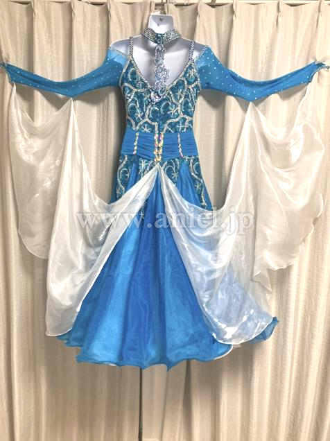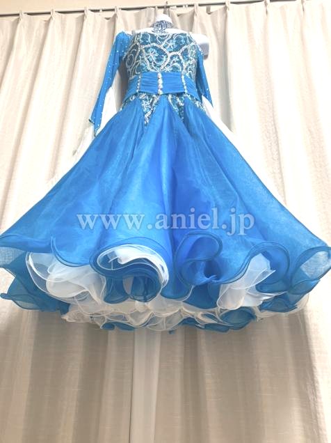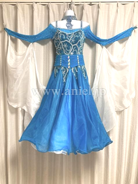 人気のオフショルダータイプで、水色と白色のツートンカラーが綺麗です。