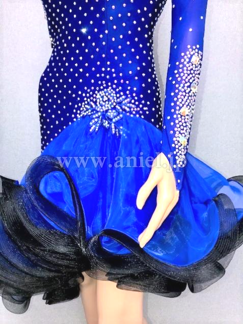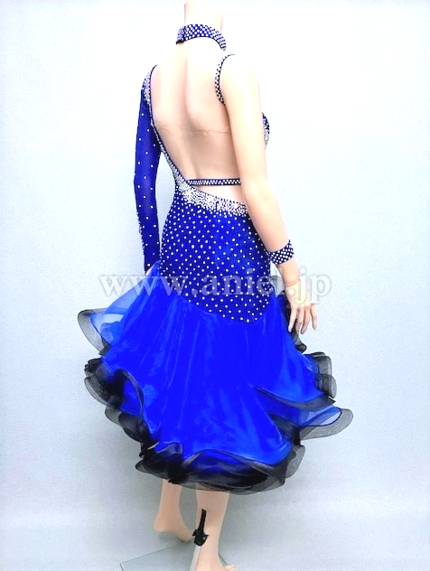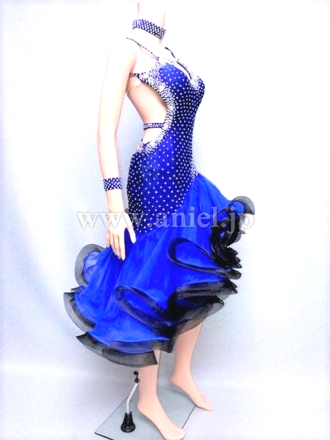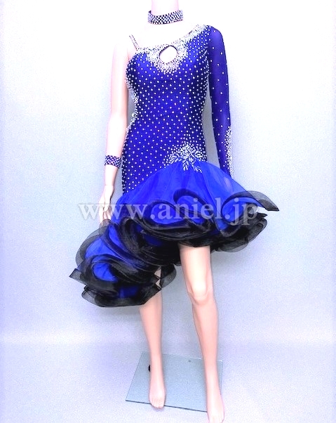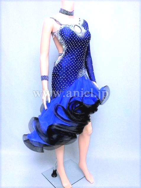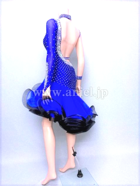 ラテンドレスながら、気品漂う鮮やかなロイヤルブルーの美しいドレスです。