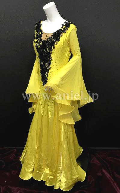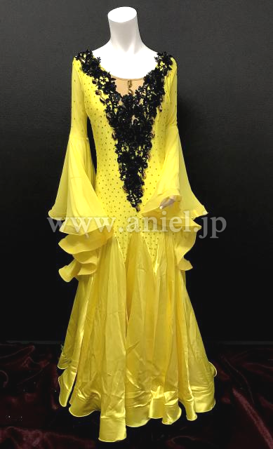 黄色に黒のモチーフが装飾されたドレス