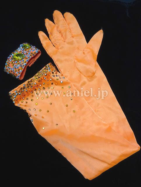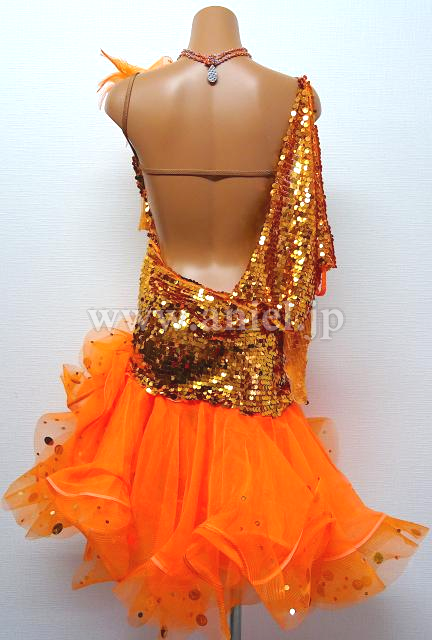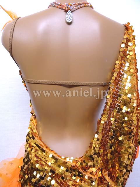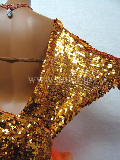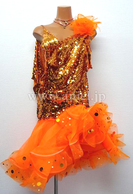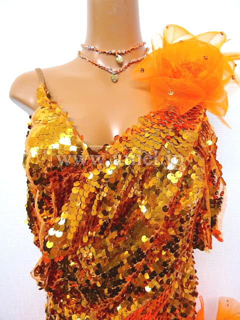 オレンジのスパンコールドレス。