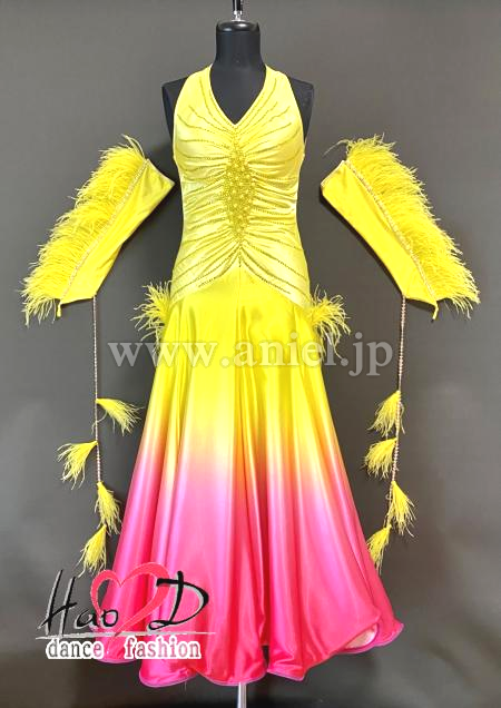 サテン生地1枚、黄色のジョーゼット生地1枚、軽くて踊りやすい