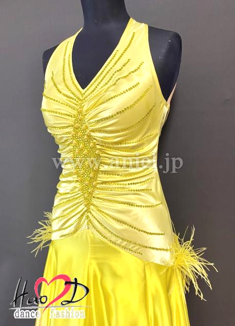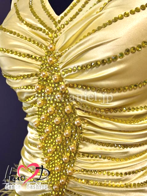 黄色の石&パールを固めた菱形ビジョンから身頃、全体に黄色い石でラインを描き、ボディーをシャープに見せる