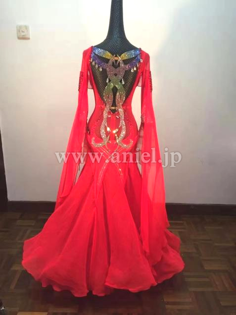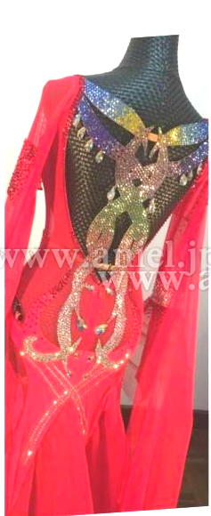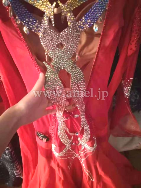 背中の装飾はカラフルなスワロフスキーストーンがびっしりで非常に豪華。