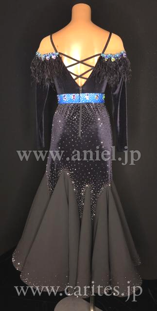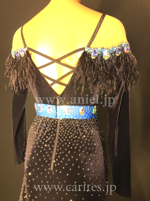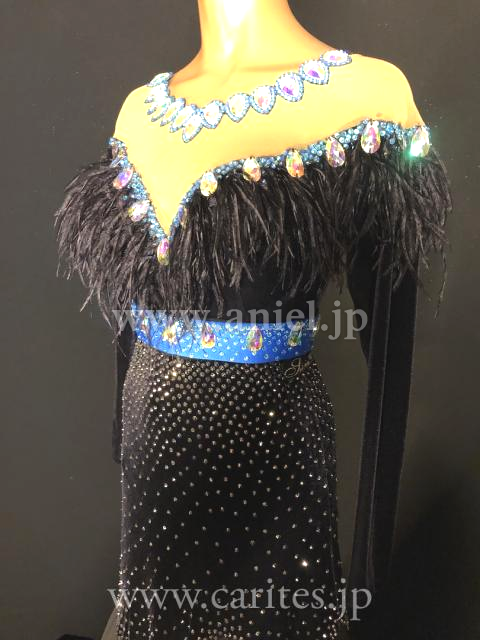 オフショルダーのデザインとリストのオーストリッチがとても上品なドレスです。