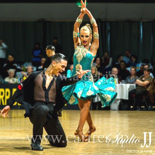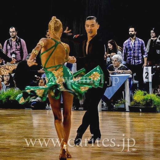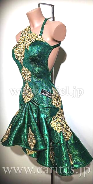 メタリックグリーン生地を使用して、フロアで華やかに舞います。