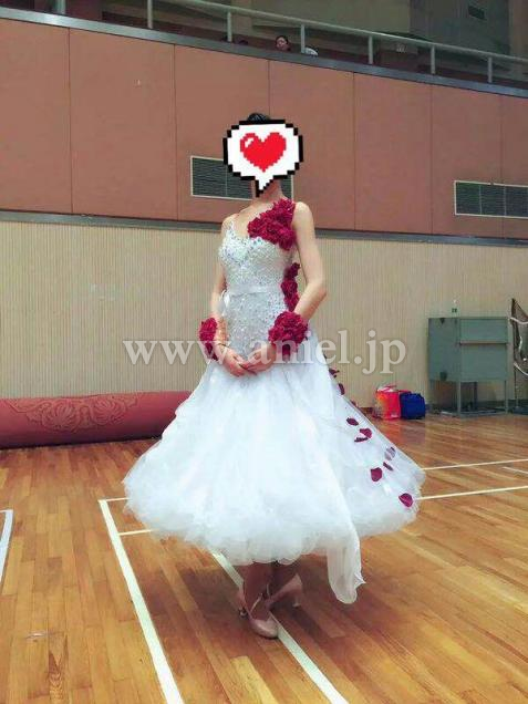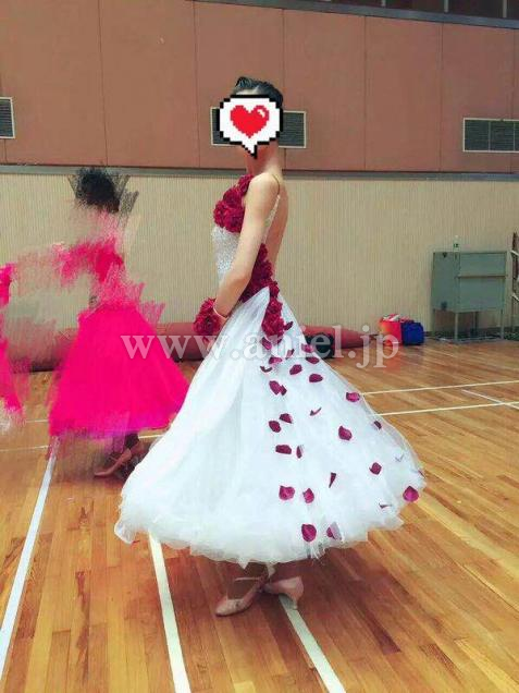 ワインレッドカラーの立体的な花がラブリーなドレス。