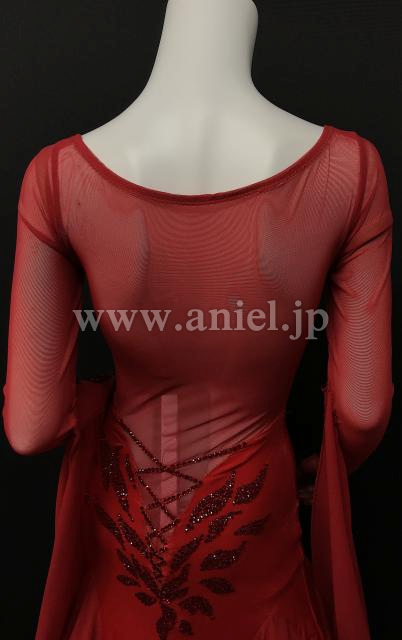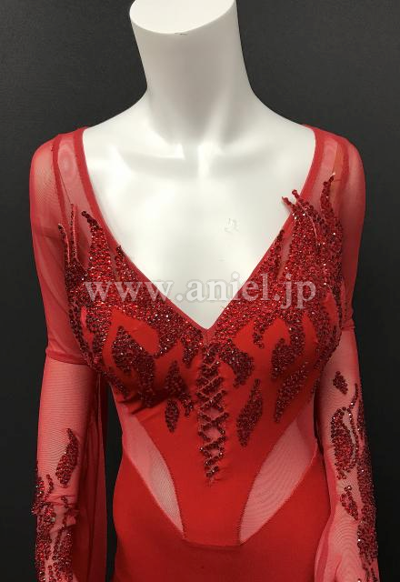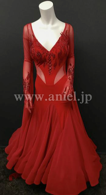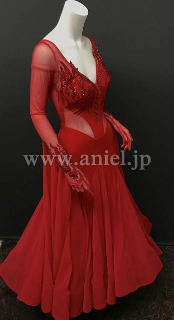 赤のロングスリーブドレス、手袋タイプになっています