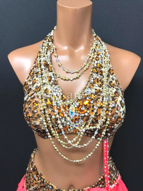 ヒョウ柄と明るい赤のセパレートデザインで非常にラテンらしい1着。
