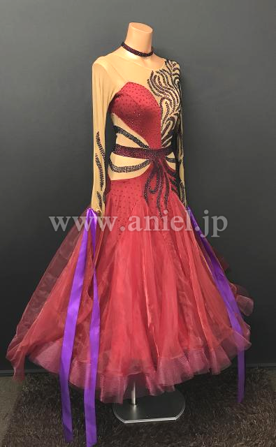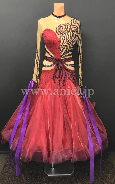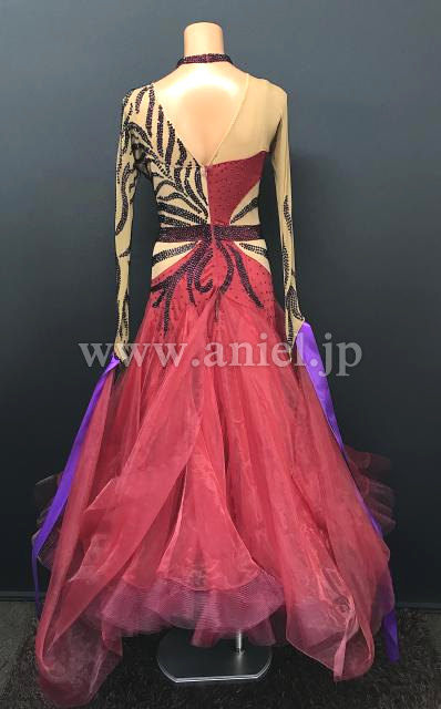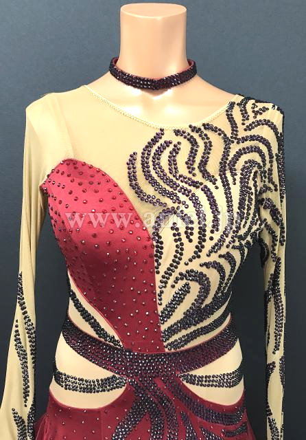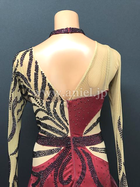 ベージュのボディにワインレッドの切り替えがおしゃれなドレスです。