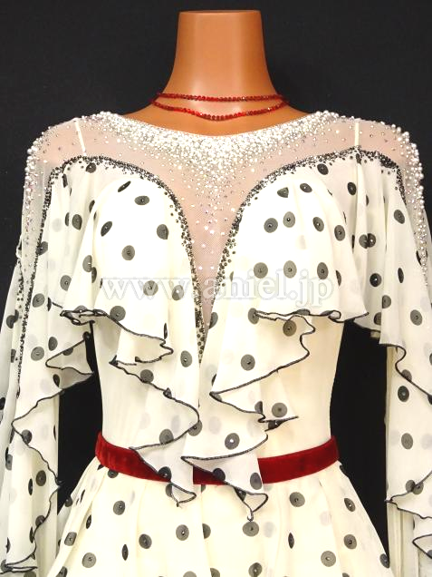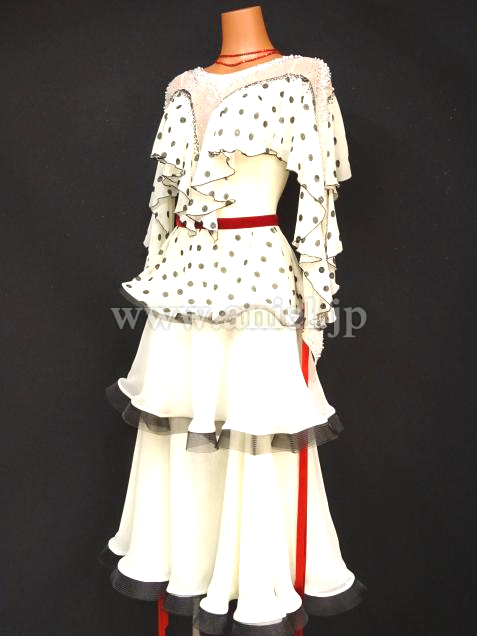 A309・黒白パールルンバドレス