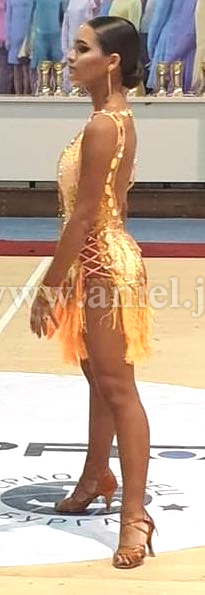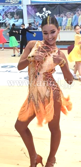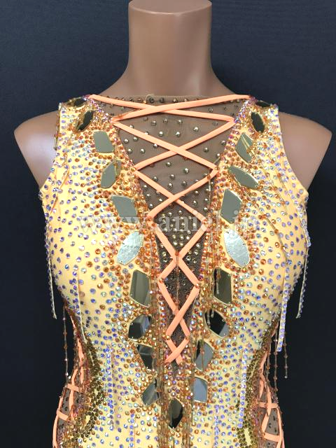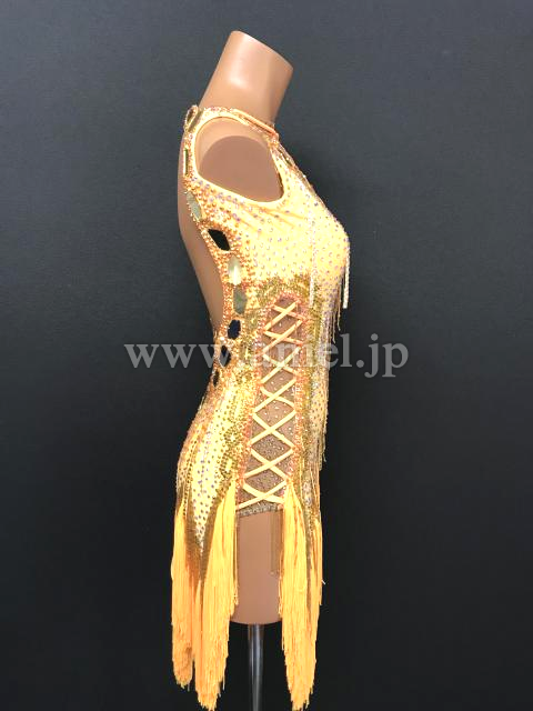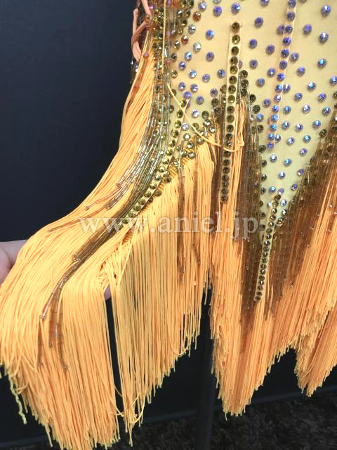 オレンジのフリンジスカートがよく踊るドレスです。