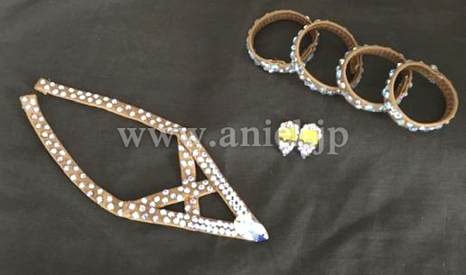 ベージュ部分全体にストーンが貼ってあり、ストーンで描いたデザインがオーロラで輝きます。