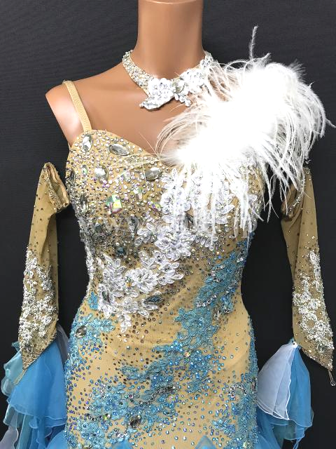 胸元には羽根飾りがあしらわれています。