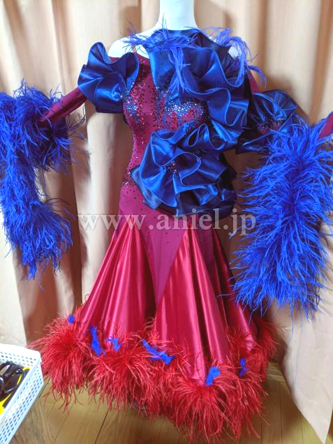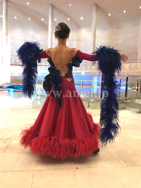 胸周り・腰回りにフリルがあることで体を大きく見せることができ、マラボーの軽い羽根のフロートで動きが良く見えます。細身で弱く見える体型を強く見せることができます。